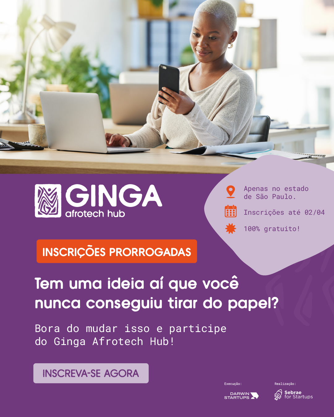 O programa faz parte do Ginga Afrotech Hub, uma iniciativa do Sebrae-SP com operação da Darwin Startups, criada para impulsionar o empreendedorismo negro no estado de São Paulo.
